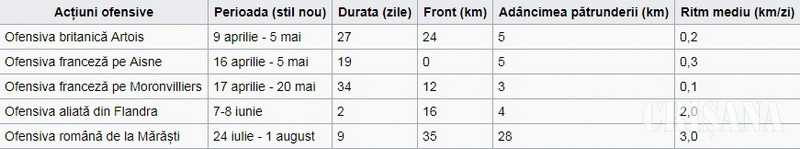 În timpul bătăliei de la Mărăști s-a realizat cel mai înalt ritm mediu zilnic de ofensivă din anul 1917 înregistrat pe teatrul de operațiuni european de către trupele Antantei (a se vedea tabelul cu ofensivele anului 1917).