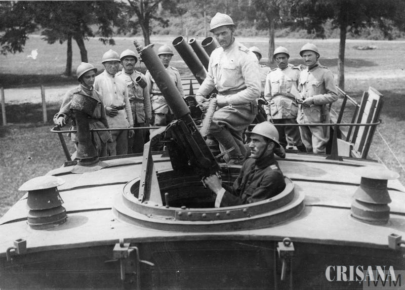 1. Militari români într-un vehicul blindat dotat cu tunuri şi mitraliere antierene