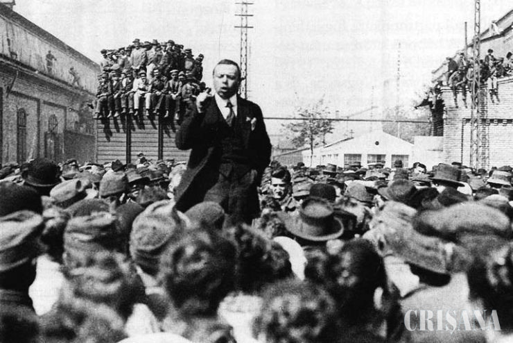 Kun Béla vorbind populaţiei în Budapesta