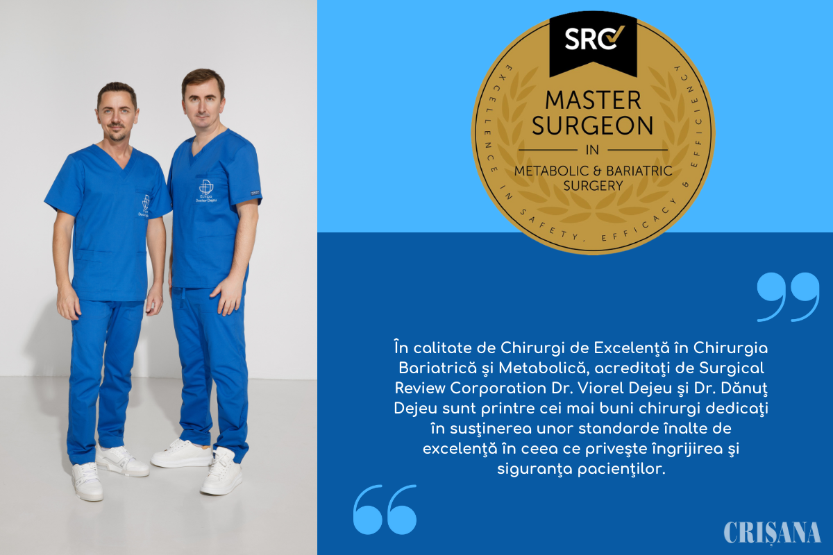 Șeful secției de Chirurgie Oncologică și Generală de la Spitalul Clinic Judeţean de Urgenţă Oradea, dr. Dănuț Dejeu, a primit de curând, de la Surgical Review Corporation (SRC), certificarea de Chirurg de Excelență în Chirurgia Bariatrică și Metabolică. Anul trecut şi fratele său, tot chirurg, a primit aceeaşi recunoaştere.