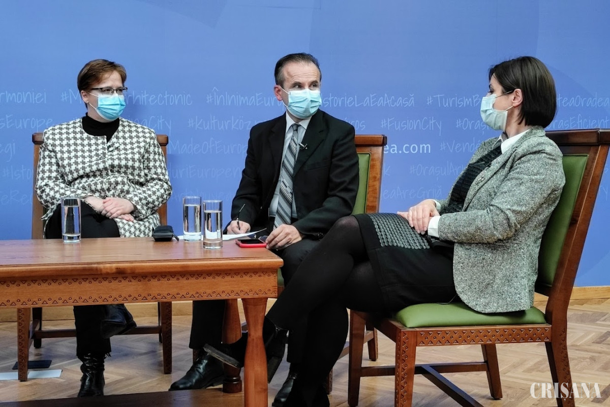 Dezbaterea găzduită vineri, 10 decembrie, de Primăria Oradea i-a avut ca invitați pe dr. Carmen Pantiș - medic primar ATI la Spitalul Clinic Județean, dr. Diana Moldovan - medic primar pneumolog la Spitalul Municipal Oradea, dr. Călin Sonea - medic-șef la DSP Bihor și dr. Diana Racz - medic specialist în sănătate publică la DSP Bihor.
