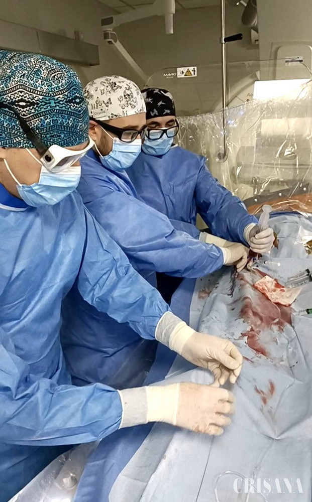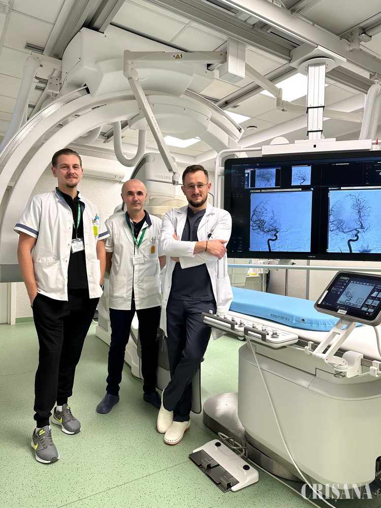 Intervenția a avut loc în cadrul Compartimentului de Neuroradiologie Intervențională, iar echipa medicală a fost formată din: dr. Dan Mihoc, medic primar radiologie și neuroradiologie intervențională și coordonator al compartimentului, dr. Călin Morgovan, medic primar radiologie și imagistică medicală, dr. Sebastian Boancă, medic primar radiologie și imagistică medicală, dr. Ștefania Sije, medic primar ATI și dr. Florina Fortiș, medic primar neurologie.