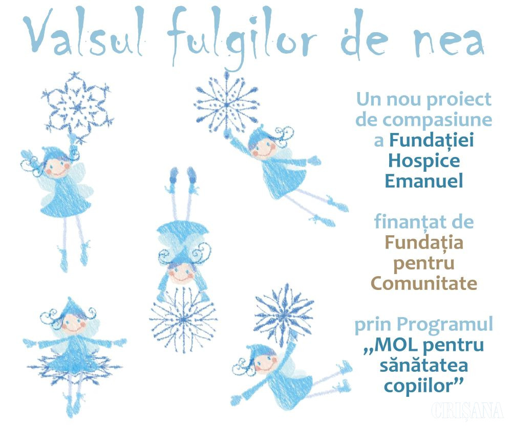 Programul „Valsul fulgilor de nea” vizează creşterea calităţii vieţii şi facilitatea adaptării la schimbări negative de viață pentru pacienți pediatrici diagnosticați cu o boală limitantă de viață în stadiu avansat și pentru copii cu un frate sau părinte grav bolnav, prin intermediul unor intervenții terapeutice suportive și expresive.