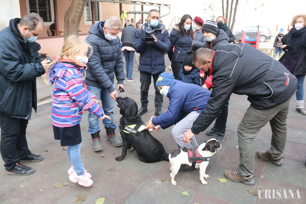 Masha, un labrador retriever negru, extrem de prietenos, și un bulldog francez, pe nume Pufi, au fost în centrul atenției, pe tot parcursul activității, coordonați de doi reprezentanți ai Asociaţiei „Angel Dog“ din Satu Mare, în frunte cu Szabo Zoltan, președintele Asociației.