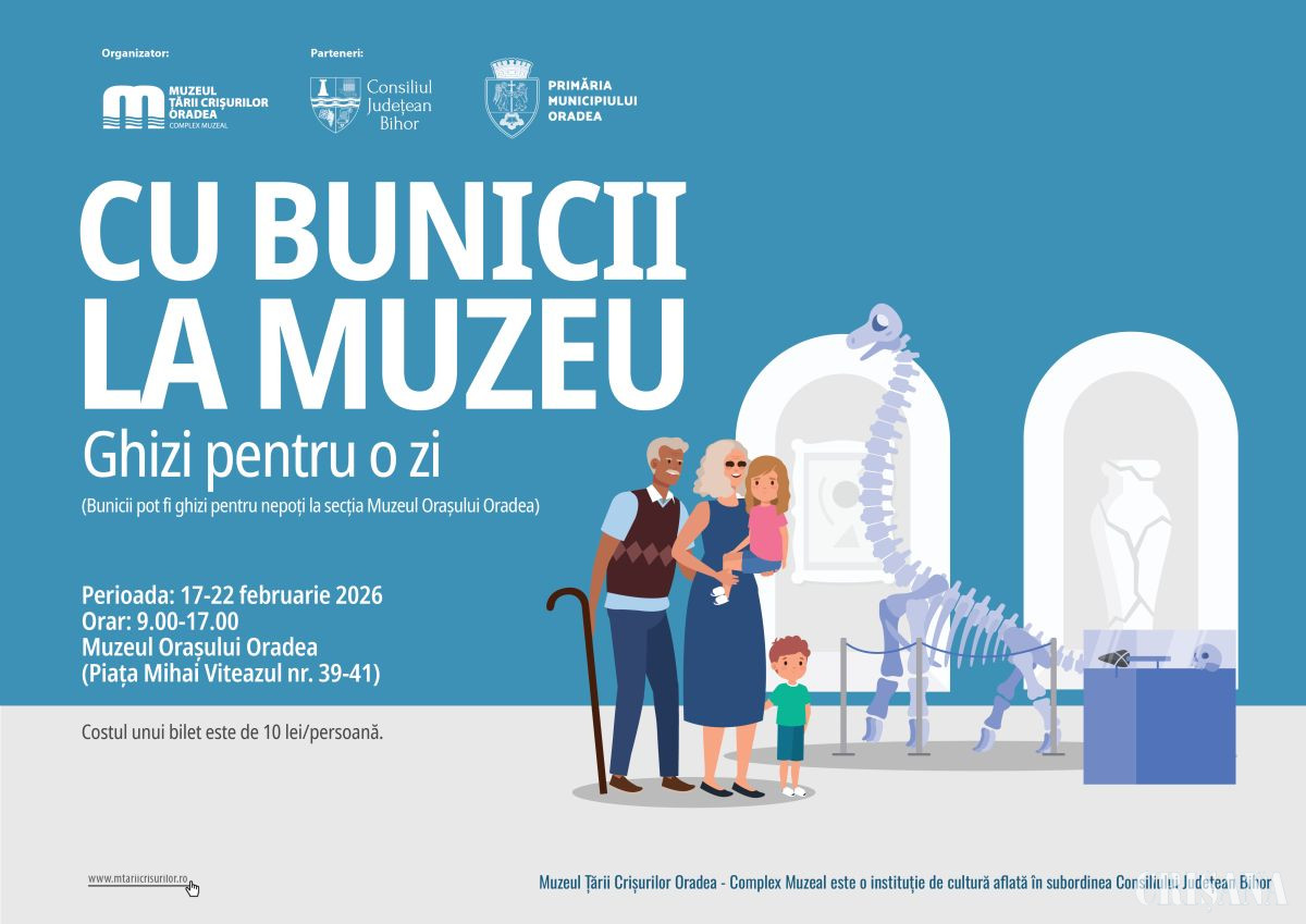 În vacanța școlară, 17-22 februarie, bunicii și nepoții lor sunt invitați să cunoască istoria orașului Oradea, la secția Muzeul Orașului Oradea (Piața Mihai Vitezul nr. 39-41, Cetatea Oradea). Cu acest prilej, preț de câteva ore, bunicii pot fi ghizi pentru nepoți, având posibilitatea să le vorbească tinerilor lor însoțitori despre poveștile ascunse ale Cetății din Oradea, despre intrarea Armatei Române în Oradea în anul 1919, despre istoria celor mai reprezentative clădiri din orașul de pe Criș.