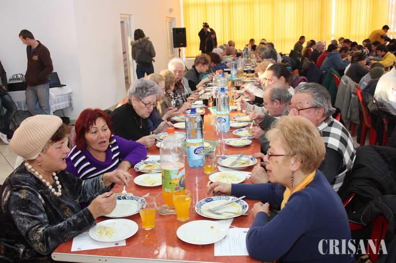 Ieri, la Cantina Colegiului Tehnic "Mihai Viteazul", au fost invitaţi să ia o masă caldă peste 180 de orădeni, persoane în vârstă sau persoane care au mari probleme sociale, care rar se pot bucura de o astfel de onoare. Membrii clubului, pe lângă faptul că au suportat cheltuielile pentru pregătirea bucatelor, au fost şi chelneri pentru invitaţii lor. "În lunile decembrie şi ianuarie, Lyons organizează în toată ţara diferite acţiuni sociale. Avem şi o campanie pe care o promovează preşedintele internaţional al Clubului, campanie ce se intitulează "Potolirea foamei". Noi, la Oradea, nu doar dăm pachete de Crăciun, ci şi organizăm o masă caldă. Am colaborat la două acţiuni. Este important ca oamenii să se simtă bine, să se întâlnească şi să se bucure împreună", ne-a declarat Rodica Dacin, guvernator Lions în România. Meniul variat a fost deosebit de apreciat. Pe lângă mâncare, cei prezenţi au ascultat şi colinde. La acţiune a fost prezent şi preotul Roman Pintea, care a binecuvântat mâncarea şi pe organizatori. Pe chipul fiecărui beneficiar se putea citi bucuria că, totuşi, cineva şi-a adus aminte şi de ei. "Mă bucură enorm de mult gestul celor de la Clubul Lions şi sper ca şi pe viitor să mai organizeze astfel de evenimente", ne-a declarat Florica. După ce au servit masa, cei prezenţi au primit şi pachete cu alimente.
