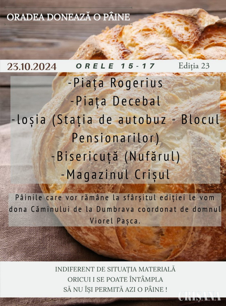 Miercuri, 23 octombrie - „Oradea donează o pâine”