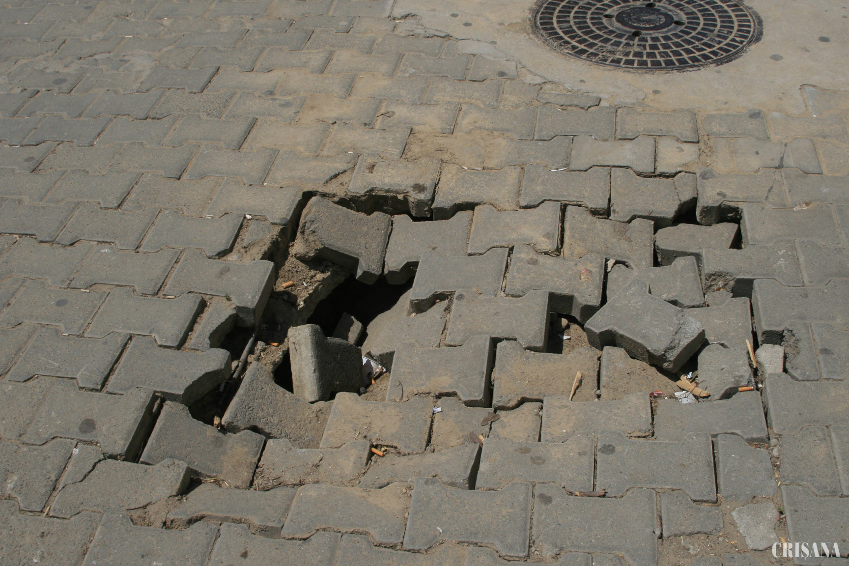 Un exemplu concludent este cel din faţa Staţionarului II Oradea, unde, de mai bine de patru luni, o porţiune însemnată din trotuarul dalat de nici măcar un an a început să se surpe. Vina revine executantului, Energoconstrucţia, care a efectuat lucrări de racord la canalul din zonă, după care a omis să compacteze porţiunea la care au intervenit. Cu toate că în zonă, în mai multe rânduri, şi-a făcut apariţia "plutoane" de funcţionari ai Direcţiei