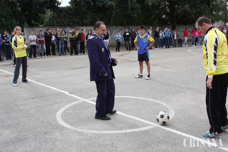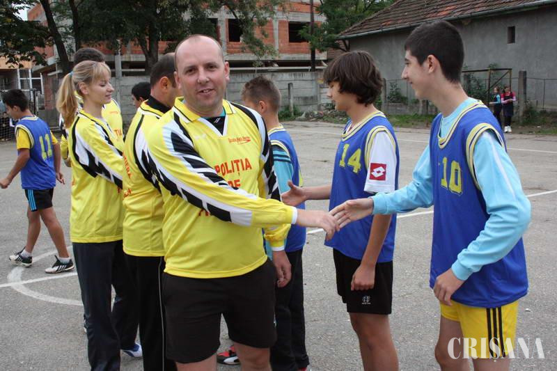 Astfel, după ce luni s-a dat startul la "Săptămâna Prevenirii Criminalităţii", oamenii legii au desfăşurat diverse activităţi la unităţile de învăţământ Oltea Doamna, Avram Iancu, Liceul Ady Endre, Colegiul Naţional "Emanuil Gojdu" precum şi liceul teoretic "Onisifor Ghibu". Printre acţiunile programate a se desfăşura în cursul zilei de ieri s-a numărat şi una mai puţin obişnuită. De această dată, poliţiştii de proximitate au renunţat la uniforme, s-au îmbrăcat în echipament sportiv şi au încins o partidă de fotbal cu elevii. Competiţia sportivă s-a desfăşurat pe terenul de sport al Şcolii Generale cu clasele I-VIII nr.11 din Oradea. Echipa poliţiştilor a fost formată din ag. şef. adj. Teodor Terec, Călin Mlendea, Florin Cuciula, Ioan Borza, Gheorghe Bredău, ag. şef princip. Marius Vasi şi ag. Ramona Paul, iar adversari le-au fost cei mai buni fotbalişti de la unitatea de învăţământ. Meciul a fost arbitrat de profesorul de sport, fiecare echipă beneficiind de susţinere din partea suporterilor aflaţi pe margine. "Este prima dată când am ocazia să îi văd pe poliţişti jucând fotbal alături de elevi. Sper ca astfel de acţiuni să se mai repete" ne-a declarat Andrei. P., elev la Şcoala nr. 11. Potrivit poliţiştilor, toate acţiunile desfăşurate în cursul zilei de ieri în cadrul Săptămânii de Prevenire a Criminalităţii au avut ca şi motto "Împreună pentru siguranţa ta!" şi au fost activităţi de prevenire a victimizării copiilor. De asemenea, s-a urmărit şi informarea elevilor cu privire la conceptul poliţiei de proximitate, ieri fiind marcată "Ziua Poliţiei de Proximitate". Poliţiştii orădeni au fost prezenţi ieri şi la Şcoala Generală "Ioan Bogdan", "Dimitrie Cantemir", "Ioan Slavici", Colegiul Tehnic "Constantin Brâncuşi", dar şi în diferite şcoli din judeţ.