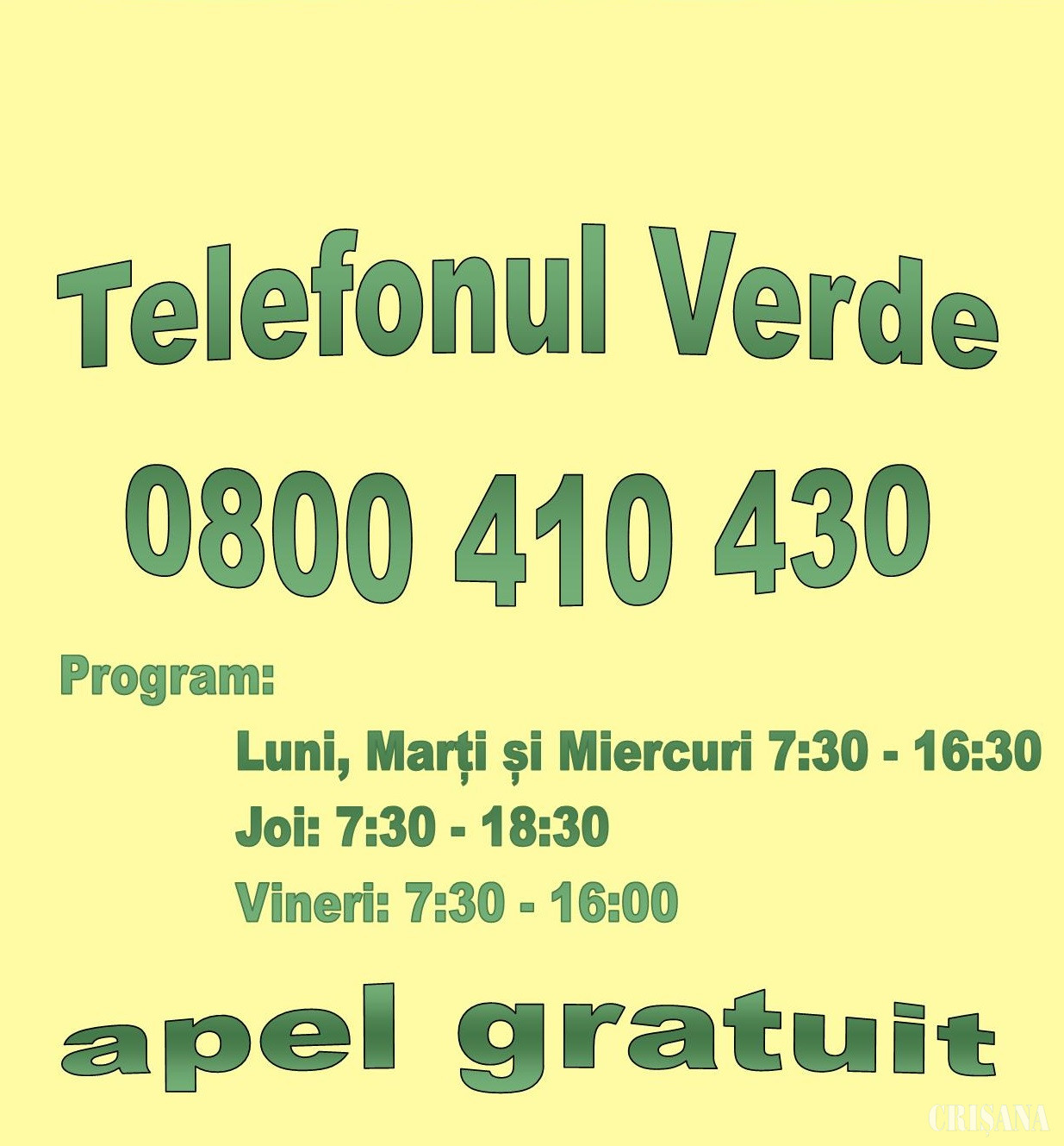 Primăria Oradea, prin Direcția de Asistență Socială Oradea, a pus la dispoziția comunității locale, începând cu data de 18 martie 2020, Tel Verde: 0800/410430, pentru persoanele care au peste 65 de ani.