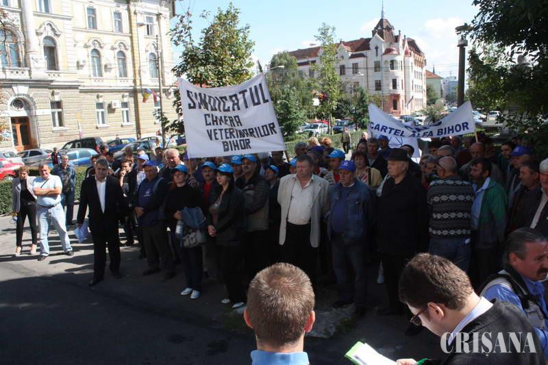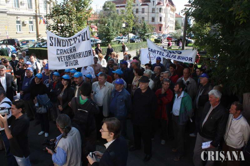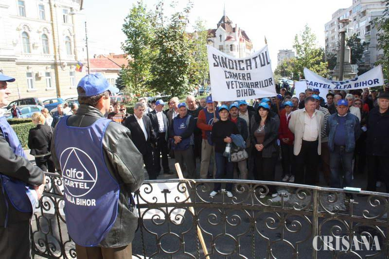Mai puţin de 100 de membri ai sindicatului Cartel Alfa - Filiala Bihor s-au adunat ieri, la ora 13.00, în faţa Prefecturii Bihor, pentru a protesta împotriva măsurilor de austeritate luate de Guvern.