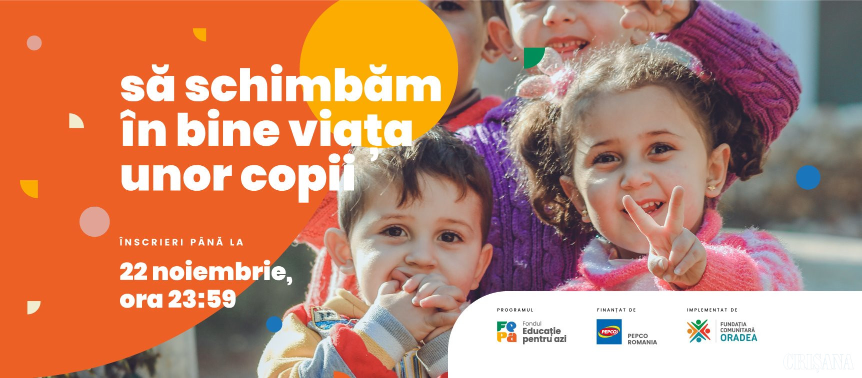 „Prin Fondul Educație pentru azi, susținut de Pepco România, ne dorim să creăm o viață normală pentru copiii din mediul rural, din județul Bihor, proveniți din familii defavorizate. Punem la bătaie 9.000 de euro pentru minim șase proiecte”, anunță reprezentanții Fundației Comunitare Oradea.