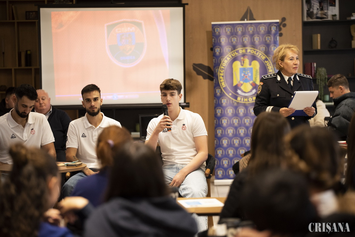 Astfel, luni, 11 noiembrie, peste 100 de adolescenți și profesori, din 10 unități școlare din municipiul Oradea, au dialogat cu polițiștii de la prevenire și invitații acestora, despre consecințele legale ale consumului de droguri, precum și influența anturajului și grupului de prieteni, identificate de tineri ca fiind printre principalii factori care determină consumul de droguri, pe fondul dorinței de a fi acceptați. Prima parte a întâlnii s-a derulat sub genericul „Sportul contra drogurilor”, invitații polițiștilor de la prevenire fiind patru jucători de baschet de la echipa de baschet CSM Oradea, respectiv Bobe Nicolescu, căpitanul echipei orădene și al echipei naționale de baschet, Andrei Topai, Matei Sere și Luca Năstruț. Sportivii s-au alăturat polițiștilor în demersurile lor de a preveni consumul de droguri, promovând activitatea fizică în interacțiunea cu tinerii, încurajând mișcarea și oferind sportul ca o alternativă sănătoasă de a petrece timpul liber și de a evita consumul de droguri. Sportivii prezenți, modele pentru tineri, au transmis mesaje puternice adolescenților prezenți în sală și au răspuns, cu generozitate, întrebărilor tinerilor, prezentând beneficiile unui stil de viață sănătos.
