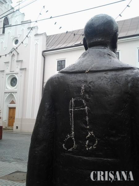 Statuia primului primar român al Oradiei a fost măzgălită cu vopsea, pe spatele lucrării fiind desenate semne obscene. Pe mâna dreaptă au fost mâzgălite alte litere. Sunt mulţi cei care, dintr-un teribilism specific vârstei ori dintr-o nostalgie tipică laşilor cu ascendenţă şi vocaţie de perdanţi, atacă memoria marelui român doar la ceas de noapte. Ce ne pune pe gânduri, însă, este lipsa de reacţie a autorităţilor locale. Se pare că nimeni nu a mai trecut, în ultima vreme, pe Corso, nici poliţişti, nici edili! Semnalăm pe această cale murdăria pusă la cale de inşi fără demnitate, sperând ca autorităţile să restabilească imaginea iniţială a statuii.