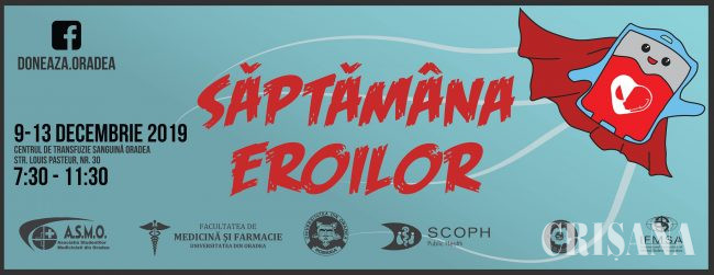 Studenții voluntari ai Asociaţiei Studenţilor Mediciniști din Oradea (ASMO) organizează, în perioada 9-13 decembrie, a 8-a ediţie locală a proiectului naţional „Donează sânge! Fii erou!”.