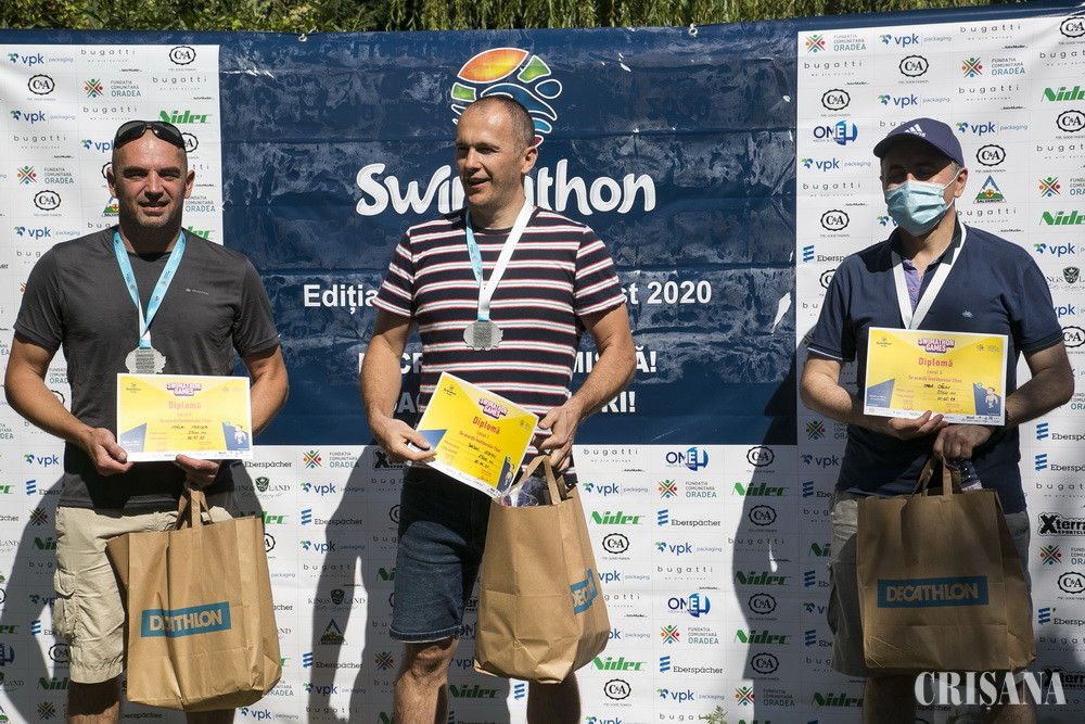 Sâmbătă, în ultima zi a Swimathon Oradea, a fost rândul înotătorilor profesionişti să înoate în ape deschise, în cadrul unei competiţii care nu a beneficiat de spectatori decât online, prin transmisie live. La start s-au înscris 22 de sportivi care au înotat pentru cele 15 proiecte înscrise. „Chiar dacă nu ne-am dat întâlnire anul acesta la bazin, am păstrat tradiția și ne-am adunat o mână de oameni să înotăm, să facem bine”, a spus Claudiu Popa, fondator al fundației Comuitare Oradea și director.