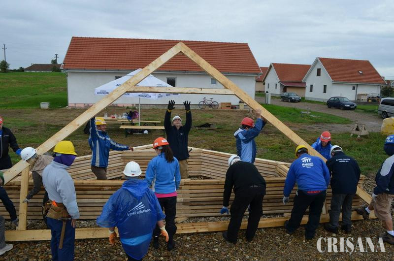 Cei 16 voluntari irlandezi muncesc la construcţia unei case, alături de echipa Habitat pentru Umanitate Beiuş. Ei şi-au propus să ridice imobilul în roşu, până la finele acestei săptămâni. Locuinţa se construieşte pe terenul pus la dispoziţie de Căminul Felix, în apropierea localităţii Sântandrei, cămin cu care Habitat are un parteneriat încă din anul 2010. Tânăra pentru care s-au mobilizat irlandezii se numeşte Andreea Fazekaş şi are 21 de ani. Andreea s-a născut într-o familie dezorganizată, marcată de mari lipsuri financiare. Părinţii ei s-au despărţit şi fata, alături de un frate vitreg a rămas în grija mamei şi a bunicii. Familia locuia cu chirie, într-o casă din chirpici, într-un sătuc de lângă Oradea. "În locul geamurilor era o folie de nailon prin care frigul trecea ca şi cum n-ar fi fost nimic acolo. Iarna ne încălzeam doar pentru că dormeam cu toţii în acelaşi pat şi ne înghesuiam unii în alţii. Aveam o singură încăpere în care locuiam toţi patru, aceasta fiind folosită ca bucătărie în timpul zilei şi ca dormitor noaptea" îşi aminteşte Andreea. Pentru că bunica şi mama trăiau doar din venituri sezoniere, dar mai ales pentru că amândouă s-au apucat de băutură, copiii au ajuns la orfelinat. Cu toate acestea, Andreea se simte norocoasă. "Am ajuns în grija celor de la Căminul Felix, unde, spre norocul meu, am trăit 10 ani. Am mers la şcoală, am învăţat să muncesc" îşi aminteşte Andreea. Tânăra mai spune că se simte recunoscătoare pentru şansa care i s-a oferit cu ajutorul Habitat pentru Umanitate. Astfel, la finele acestei săptămâni, Andreea îşi va vedea pe jumătate împlinită cea mai mare dorinţă a ei: să aibă o locuinţă decentă şi să scape de mizeria care a urmărit-o în copilărie.