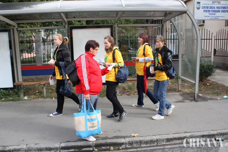 Peste 160 de tineri au petrecut două zile prin frig pe străzile dintre blocuri, împărţind fluturaşi şi vorbindu-le orădenilor despre importanţa reciclării selective.