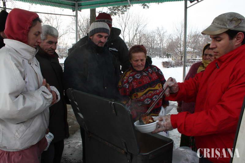 Ieri, la orele amiezii, în Parcul I. C. Brătianu, peste 40 de persoane fără adăpost din Oradea s-au adunat pentru a servi o masă caldă. Acţiunea de ajutorare a acestor oameni care îşi duc veacul pe stradă, neavând un acoperiş deasupra capului, a fost organizată de Fundaţia Ecclesia Mater. Zeci de persoane, copii şi adulţi, îmbrăcaţi sărăcăcios şi înfriguraţi, vin zi de zi în parc la orele prânzului să se bucure de o masă caldă, câteva felii de pâine şi un ceai fierbinte. Cei care au nevoie primesc câte o pătură ca să se încălzească sau câteva haine. Şi ieri, timp de aproximativ o oră, Parcul I. C. Brătianu a fost locul unde oamenii străzii, cei care duc zilnic o luptă continuă de supravieţuire în condiţii greu de imaginat, s-au adunat, aşteptând la rând ca să-şi ridice porţia de mâncare. "Ceea ce facem în această perioadă nu este o noutate. De 16 ani organizăm astfel de acţiuni. În fiecare an, în timpul Sărbătorilor de Iarnă, dar şi după acestea, dacă vremea este urâtă, le oferim sărmanilor ajutor. Persoanele pe care le ajutăm nu au niciun venit, sunt oameni care locuiesc în stradă. Practic, îi ajutăm să supravieţuiască", a precizat Ferencz Istvan, preşedintele Fundaţiei Ecclesia Mater. În acest an, acţiunea a început pe 23 decembrie şi se va încheia pe 5 ianuarie, iar masa caldă de ieri a constat într-o porţie de fasole cu afumături şi un pahar de ceai cald. "În urmă cu 20 de ani mi-am pierdut locuinţa. De atunci locuiesc pe străzi, pe unde pot. Mai câştig un leu din munca ocazională, bat covoare sau sap în grădini. Mâncarea caldă pe care o primim în aceste zile ne ajută să trecem mai uşor peste zilele friguroase", ne-a declarat Gheorghe Popa. Din păcate, din 6 ianuarie, aceste persoane nu se vor mai putea bucura de hrana caldă oferită gratuit, iar lupta pentru supravieţuire va fi şi mai crâncenă.