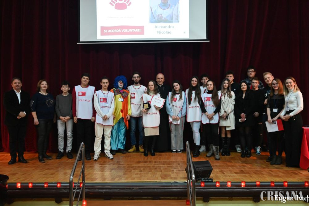 În anul 2023, 11 voluntari au realizat 235 ore de voluntariat la cantina socială. Premiul s-a acordat voluntarului Andrei Horgoș.