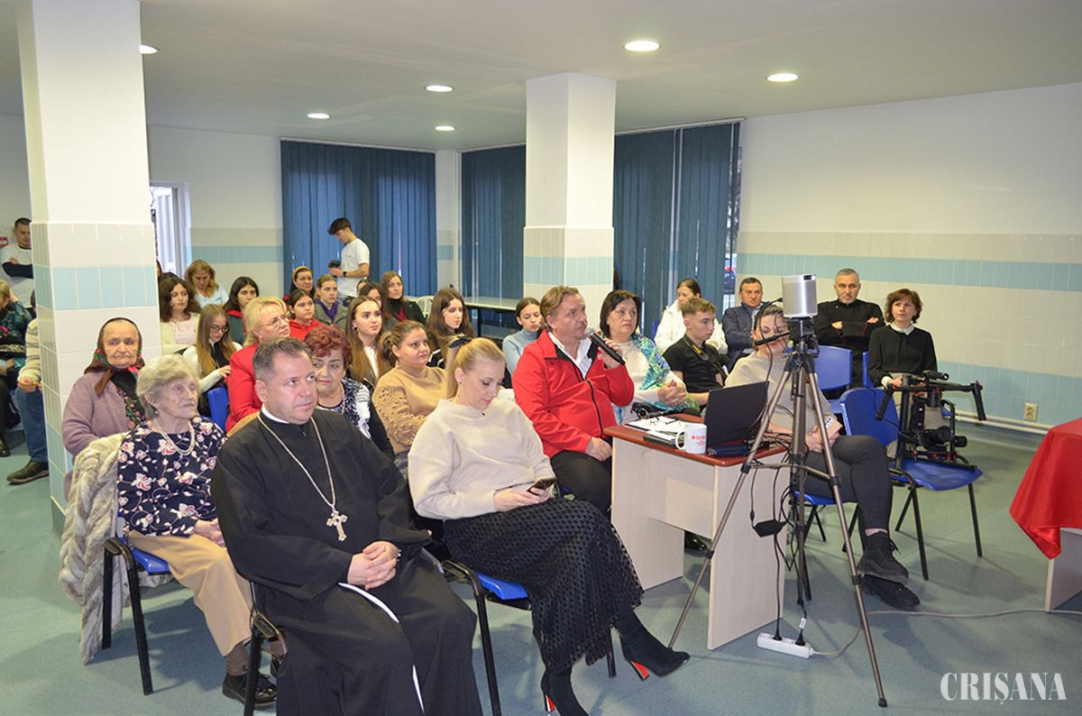 Au luat cuvântul: Andreea Ghercă, coordonator Departamentul de Voluntariat (pe zoom), Anca Grama, director executiv al Direcției de Asistență Socială Oradea, Teodora Boda, asistent social principal al Asociației Caritas Eparhial Oradea, și Părintele Mihai Vătămănelu, vicar general al Eparhiei Greco-Catolice de Oradea.