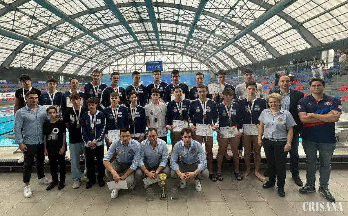 Echipa de polo U15 Crișul Oradea a câștigat cu victorii pe linie Campionatul Național. Virtual campioni înaintea ultimului turneu final de la Oradea, poloiștii pregătiți de Antonio și Adrian Alexandrescu au câștigat și meciurile din propriul bazin cu Steaua București (12-10), CSM Unirea Alba Iulia (25-11) și Dinamo București (14-6).