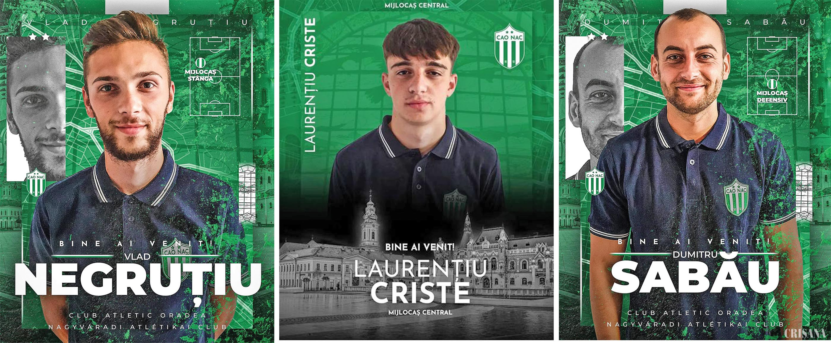 Echipa de fotbal Club Atletic Oradea continuă campania de transferuri cu scopul de a întări lotul de jucători cu care va ataca noul sezon al Ligii a IV-a care ca debuta pe 27 august. Ultimele trei noutăți sunt Laurențiu Criste, Dumitru Sabău și Vlad Negruțiu, toți trei fiind mijlocași de „meserie”.