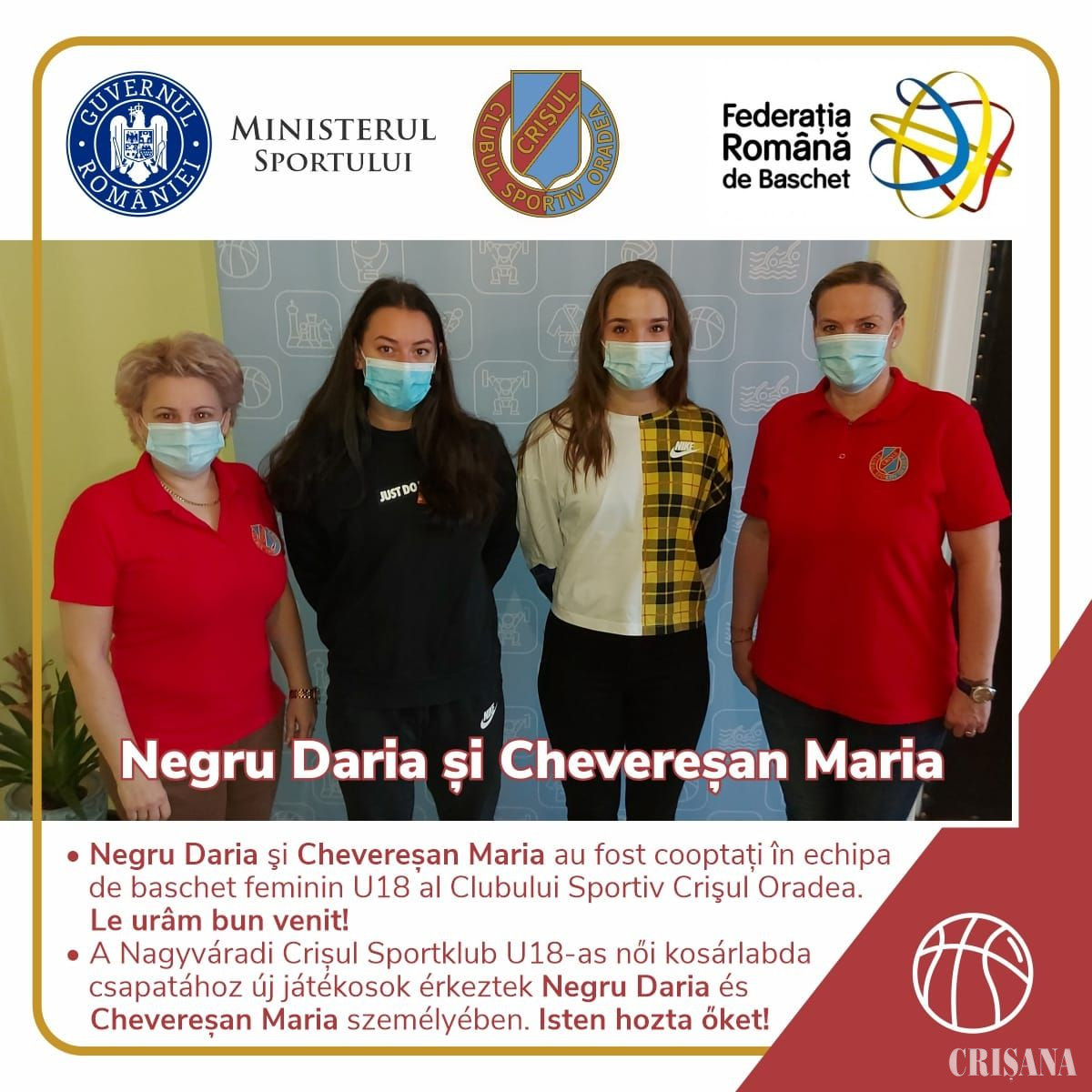 Întăriri primeşte şi echipa de baschet feminin U 18, în care au fost cooptate Negru Daria și Chevereșan Maria, de la echipa de Ligă Națională FCC Baschet UAV Arad. „Cele două sportive care au ales să se alăture echipei noastre vin cu un istoric remarcabil, reușind să cucerească titluri naționale. Ambele jucătoare sunt prezențe constante la loturile naționale, atât 5x5, cât și 3x3. Suntem convinși că vor aduce un aport considerabil echipei noastre, sporind șansele la clasarea pe podium și la această categorie”, a declarat Ioana Anica, antrenoarea echipei orădene. Tot în această iarnă, la clubul Crișul, dar la echipa feminină de baschet U15, a mai fost transferată timișoreanca Alesia Gavrilă.