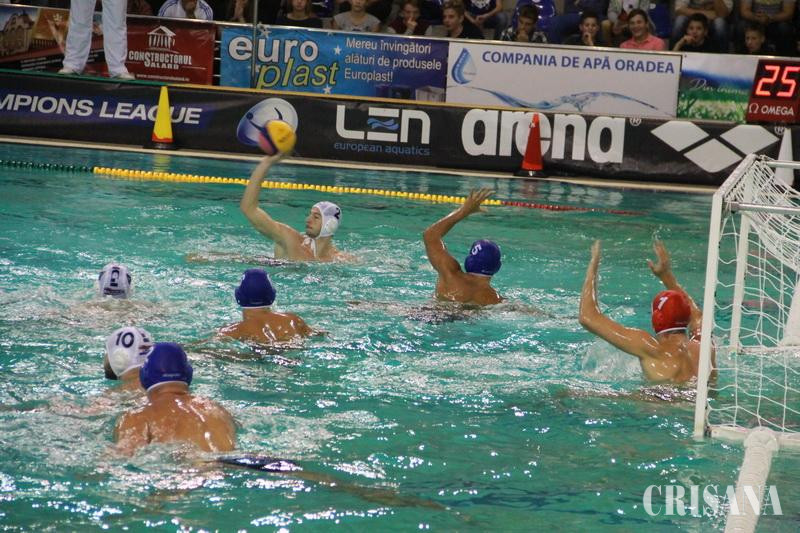 Forța poloului din țara vecină a fost demonstrată încă o dată, vicecampioana Ungariei reușind să câștige la Oradea cu 7-9 (2-3, 2-2, 1-3, 2-1) în manșa tur a playoff-ului Ligii Campionilor. Returul se va disputa sâmbătă 17 octombrie la Budapesta.