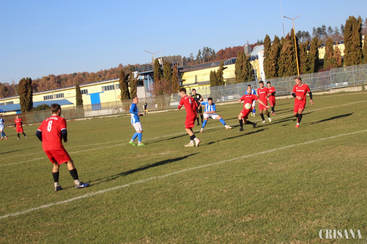 Rar am mai văzut o dominare atât de „sufocantă” cum au reușit șteienii în ultima etapă de pe teren propriu în acest acest campionat când, practic, și-a „înghesuit” partenerul de întrecere în jumătatea lui de teren, însă, în ciuda nenumăratelor ocazii nu au reușit să înscrie în primele 30 de minute, când adversarul nu a...existat!. De altfel, cu un fair-play desăvârșit, banca tehnică a oaspeților a recunoscut că au scăpat ca prin minune de un scor „fluviu” în prima repriză. La prima acțiune pe poartă șteienii au ratat o ocazie uriașă prin Oncică (2) care a trimis pe lângă Armos, ieșit în întâmpinare, însă mingea a întâlnit bara laterală. Lovitura puternică de cap a lui M. Junc (3) a fost respinsă, miraculos, de portarul oaspeților pentru ca L. Junc (7) să trimită peste bară din marginea careului mic. Încheietura barelor a fost aliata oaspeților la șutul violent a lui M. Junc (13), pentru ca Gheban (15) să trimită puțin peste poartă, din poziție favorabilă, în timp ce Oncică (17) a trimis puțin alături din careul mare. Armos s-a evidențiat la șutul puternic a lui Oncică (21) pentru ca acesta, două minute mai târziu să fie stopat de același inspirat portar care a scos, de sub bară, o minge foarte dificlă, în timp ce Gheban (29) a șutat, din nou, peste bară. Scăpați „din corzi” oaspeții au inițiat o acțiune bine legată care s-a soldat cu un fault în careu, iar lovitura de pedeapsă, just acordată, a fost transformată, 0-1, de Roland Crișan (31). Egalitatea, 1-1, a fost restabiltă de Oncică (41) cu un șut înșelător, din unghi, pentru ca la ultima fază a reprizei Negrea să se remarce la acțiunea solitară a lui Solymosan (45). Poate că altfel ar fi stat lucrurile dacă centralul Zah ar fi acordat lovitură de la 11 metri la faultul făcut în careu de Kulcsar asupra lui M. Junc (52), când acesta a fost „barat” în drumul spre poartă. A fost suficientă o acțiune rapidă a oaspeților pentru a destabiliza defensiva adversă, iar Janos Lakatos (56) să înscrie nestingherit, 1-2, pentru ca, tot pe contraatac, Ferencz Solymosan (73), cel mai bun jucător de pe teren, să mărească diferența, 1-3. Între timp A. Gruie (59) a „corectat” o minge cu capul însă aceasta a ocolit de puțin poarta adversă. Scorul final, 1-4, a fost stabilit de David Iacso (80) care a profitat de spațiile largi avute. Așadar, în ciuda unei evoluții foarte bune, mai ales în prima repriză, șteienii au trebuit să se recunoască învinși în fața unui adversar care a știut să fructifice, aproape, fiecare oportunitate.