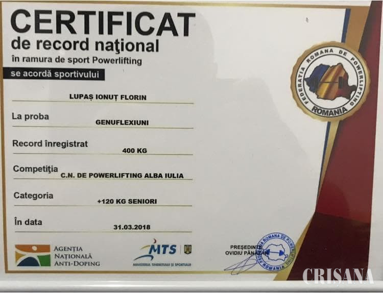 Powerliftingul, expresia unei supremații în planul ramurilor de sport în care este necesară dezvoltarea pregnantă a forței musculare, prinde „rădăcini” sigure în Depresiunea Beiușului datorită unui împătimit al acestei discipline sportive, Florin Ionuț Lupaș, multiplu campion național la powerlifting.