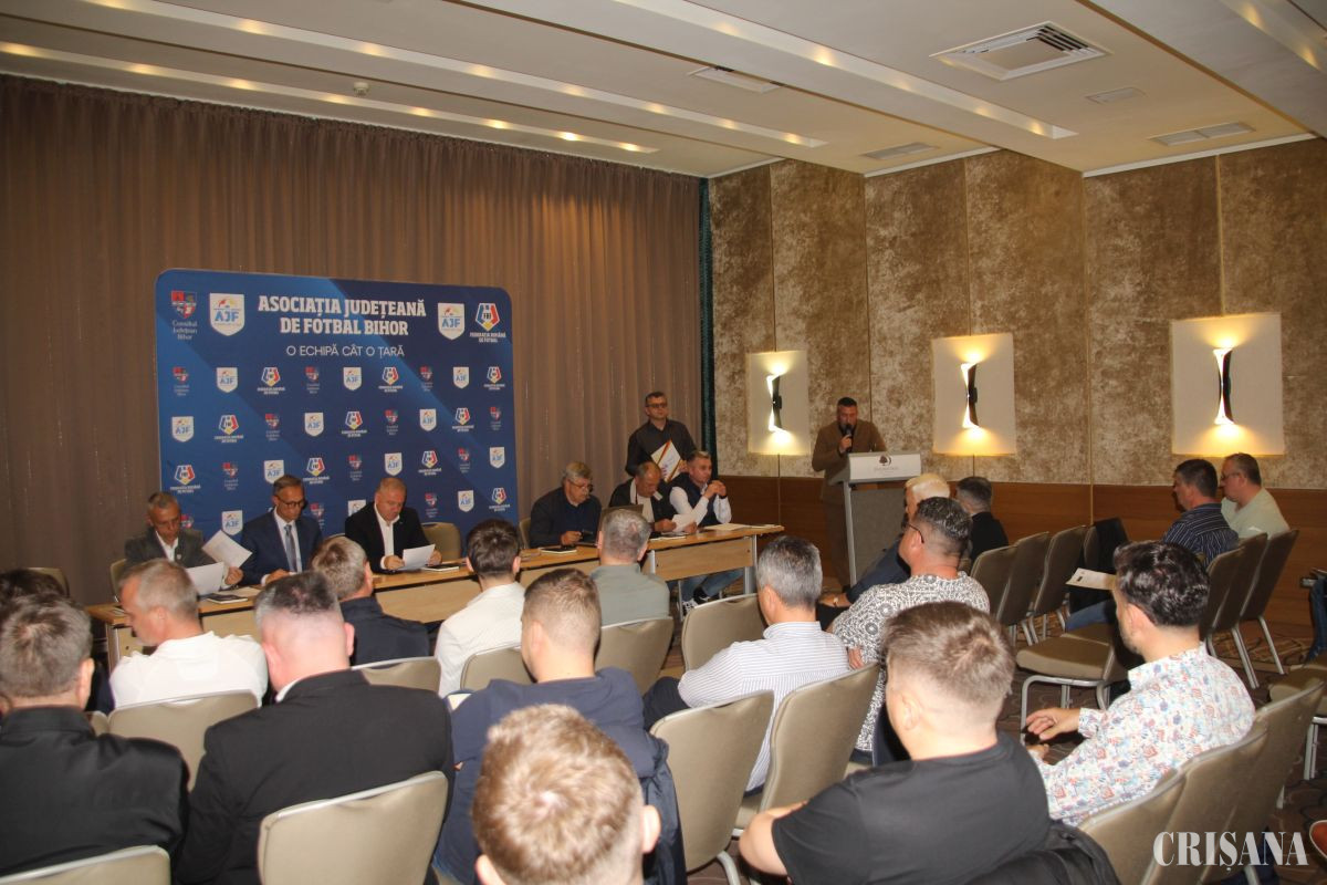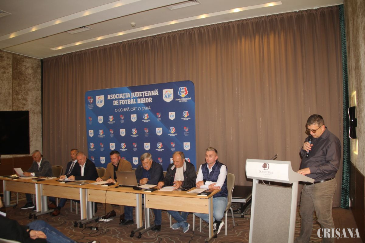 Prezidiul Adunării Generale Ordinare a AJF Bihor a fost compus din președintele Zeno Bundea; vicepreședinții Florin Marian și Valentin Vesa; responsabilul Ligii a IV-a, Marius Junc; responsabilul Ligii a V-a, Alin Durgheu; responasabil copii și juniori, Dan Mudura; președintele CJA Bihor, Ștefan Erdei. Secretarul General a AJF Bihor, Petru Boros, a citit ordinea de zi, care a fost aprobată cu unanimitate de voturi. S-a trecut apoi la aprobarea echipelor nou afiliate/reafiliate: ACS Voința Ciumeghiu, AS Buibaș Tăut, AS Phoenix Junior, AS CF Vulturii Tineri Săcuieni, CS Junioru 2017 Salonta, ACS Stema Oradea, ACS Școala de Fotbal Cristi Oros și a celor dezafiliate, AFC Unirea Roșia, CSC Hidișelu de Sus, CS CF Liberty Oradea, CSM Oradea. Președintele AJF Bihor, Zeno Bundea, a afirmat, printre altele, în raportul de activitate, după un an de mandat: „În anul trecut, la nivelul județului Bihor, ne-am concentrat pe stabilitate, dezvoltare si creșterea calității actului fotbalistic, reușind să organizăm în condiții foarte bune competițiile județene, iar în același timp am fost permanent alături de cluburile afiliate, oferind sprijin administrativ și menținând un dialog constant pentru a răspunde nevoilor dumneavoastră. Am continuat dezvoltarea resursei umane prin organizarea a două cursuri pentru licența C, contribuind astfel la formarea antrenorilor din județ. Un proiect important a fost „Bihorul mai curat”, realizat în parteneriat cu Consiliul Județean Bihor, prin care 40 de echipe de juniori au beneficiat de vouchere în valoare de 1.500 de lei fiecare pentru echipamente sportive. De asemenea, echipele de seniori si juniori au primit mingi în valoare totală de 70.000 de lei, oferite de sponsorul European Food Internațional, care a susținut financiar și organizarea Supercupei Bihorului. În plus, am reușit să atragem sponsorizări suplimentare în valoare de aproximativ 60.000 de lei, contribuind la susținerea activităților noastre. Am făcut pași importanți în direcția modernizării, continuând procesul de digitalizare prin implementarea sistemului Football Connect și achiziționarea imprimantei pentru eliberarea noilor carduri de legitimare, care vor înlocui vechile carnete. Pe această cale dorim să mulțumim firmei Secom și domnului Sebastian Vușcan pentru sprijinul acordat în acest proces. De asemenea, mulțumim prietenului meu Dorin Micula pentru susținerea financiară acordată transmisiunilor meciurilor pe platformele online. Datorită acestor eforturi, Asociația Județeană de Fotbal Bihor se află astăzi în primele cinci asociații județene din țară, din totalul de 42, în ceea ce privește implementarea acestui sistem. Am acordat, totodată, facilități cluburilor din Liga a V-a și sectorului juvenil, prin scutirea taxelor de înscriere, pentru a sprijini dezvoltarea fotbalului de bază. Pentru sezonul competițional 2026-2027, obiectivul nostru principal este atragerea de noi sponsori care să își asocieze imaginea cu fotbalul bihorean si să contribuie la dezvoltarea fotbalului amator”.