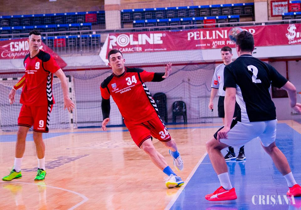 Handbaliştii antrenaţi de Sebastian Tudor au condus în permanenţă, dar totuşi la pauză scorul a fost egal (20-20). Cea mai mare diferenţă de scor s-a înregistrat în minutul 48, când CSM Oradea a condus cu 30-23. Cosmin Liberţ şi Georgel Haiduc, cu câte 10 reuşite, au marcat mai mult de jumătate din golurile învingătorilor.