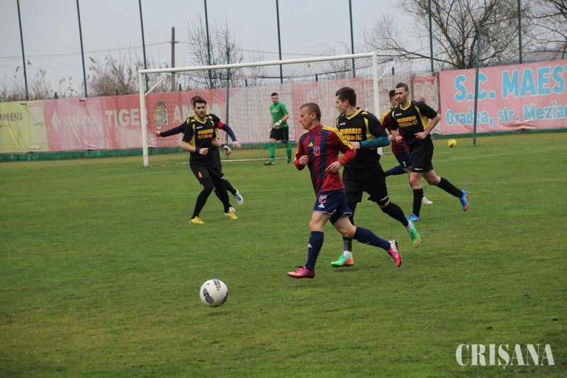Prima parte a fost, aşadar, una cenuşie, ca şi timpul, de altfel, cu faze derulate mai mult la mijlocul terenului, porţile fiind arareori ameninţate. Oaspeţii au avut prima "şarjă" în careul advers prin Cuc (10), care a şutat pe lângă, orădenii replicând prin Sfârlea (14), însă Bărăian a fost la post. Lovitura liberă executată de Sârlea (28) a trecut peste bară, repriza fiind încheiată cu o lovitură liberă a lui Cuc (42) pe centrul porţii. Balla (47) a ratat din marginea careului mic, pentru ca imediat Goia să se remarce la şutul lui Neaga (49). Faza care a rupt derby-ul a fost realizată de Tătar (59), care a avansat, nestingherit, pe partea dreaptă, catapultând balonul de la 25 de metri, în vinclu (1-0).