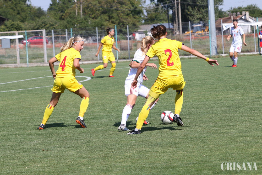 Partida, care s-a defăşurat pe Stadionul Luceafărul din Sânmartin şi care a prilejuit încheierea stagiului centralizat de pregătire desfăşurat în Bihor, s-a încheiat cu nu mai puţin de 10 goluri marcate, fotbalistele pregătite de Irina Giurgiu reuşind să reducă uşor din handicap doar în partea secundă. Cu un joc de apărare visător, româncele au încasat nu mai puţin de 4 goluri în prima repriză reuşind să înscrie o singură dată, prin Cristina Botojel, în minutul 43. În mitanul secund, pentru tricolore au mai punctat Ioana Bălăceanu, în minutul 62, şi Adina Borodi, în minutul 80. Golurile selecţionatei maghiare au fost marcate de următoarele: Bokor Bianka 24, Edina Ciontoş 27 (autogol), Siber Gloria 36, 47, Savanya Csilla 44 şi Papai Emoke 48, 55 din penalty. Jocul a fost arbitrat de către Adina Popa – Eniko Biro, Diana Ilie, arbitru de rezervă fiind Adina Moza.