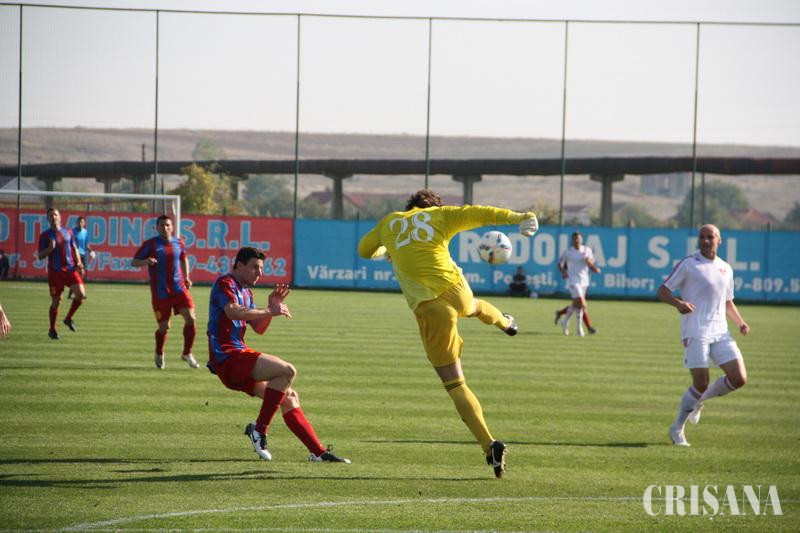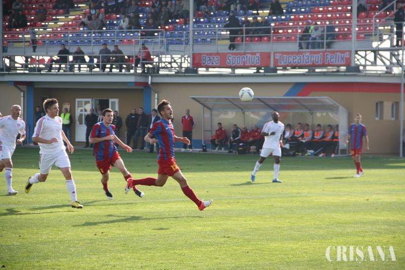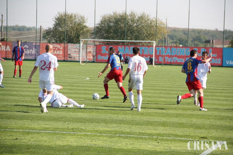 Prima şarjă ofensivă au avut-o gazdele, însă şutul lui N. Roşu (6), la firul ierbii, a fost reţinut fără dificultate de portarul arădean, după care jocul s-a derulat la mijlocul terenului. Bundea l-a angajat cu o minge în careul mare pe Blănaru (28), însă şutul acestuia din 12 metri, latreal dreapta, a trecut pe lângă vinclu, ei doi fiind şi înainte cu un minut protagoniştii unei faze identice, însă Blănaru nu a reuşit intercepţia. Oaspeţii au răspuns prompt, iar în urma unei devieri nefericite a lui Letan, Laso (29) a şutat slab, pe jos, din doar 8 metri permiţându-i lui Miron să salvaze un gol gata făcut. Silvăşan şi Neagu, în acelaşi minut, 31, nu au reuşit intercepţia balonului din preajma careului mic, intr-un moment de panică colectivă a gazdelor. Ianc (44) a şutat din marginea careului mare, însă fără probleme pentru Amadio. Partea a doua a debutat cu un iureş al ''luceferilor'' însă după lovitura liberă bine executată de Bundea (53), de la 25 de metri, rând pe rând Ianc (58), N. Roşu (59), C. Roşu (61), Blănaru (63) şi Mintaş (64), urcat în atac, nu au prins cadrul porţii. Scăpaţi din corzi, arădenii au răspuns imediat, iar la un duel, în suprafaţa de pedeapsă, dintre G. Bogdan şi Neagu (65), atacantul arădean a căzut, oaspeţii solicitând lovitură de la 11 metri. Silvăşan (67,68) a avut două bune oportunităţi, dar a şutat pe lângă poartă din apropiere. C. Roşu (70) putea să scuture plasa, însă şutul său puternic, din colţul careului mic, a trecut peste bară, irosind o ocazie rarisimă. Insistenţa arădenilor nu a dat roade nici la raidurile lui Hiago (72) care în aceiaşi fază a şutat de două ori la poartă, fără succes însă, dar nici la ''trasorul'' , pe jos, a lui Mărginean (77), reţinut de Miron. Silvăşan (85) a creat iluzia golului în tribune, însă mingea trimisă fulgerător din doar 4 metri a scuturat plasa laterală. Şansa nu le-a surâs gazdelor la ultima fază a jocului, deoarece lovitura liberă, de la 20 metri, executată de Ianc (90+2) a întâlnit bara transversală, fază la care portarul arădenilor nu a avut nici o reacţie. În urma acestui joc tânara echipă orădeană a pierdut primele puncte pe teren propriu, în faţa unei grupări care prin achiziţiile făcute este una cu pretenţii la promovare, în timp ce politica clubului gazdă este menţinerea în eşalonul secund şi de promovare a cât mai multor juniori bihoreni în fotbalul naţional.