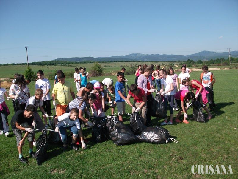 Astfel bine echipaţi cu saci de polietilenă şi mănuşi de protecţie, precum şi accesoriile necesare, elevii au luat cu asalt mai multe şantiere de lucru sub coordonarea cadrelor didactice compusă din prof. Anca Ramona Nica, Elena Rengle, Delia Jurcău şi Titiana Micle. Astfel, pe Valea Bulzului şi a Sighiştelului, o parte din elevi au adunat nenumăraţi saci umpluţi cu pet-uri, sticle, borcane şi alte deşeuri, evident aruncate de concitadinii lor la voia întâmplării. Cea mai mare parte a elevilor şi-au derulat activitatea pe Dumbravă şi pe albia Crişului Băiţa, precum şi pe marginea drumului judeţean ce leagă comuna lor de oraşul Ştei. Aici munca desfăşurată a fost destul de intensă şi recolta de deşeuri bogată, datorită neglijenţei celor din trafic, care aruncă multe resturi, chiar şi menajere. După multe ore de muncă în care elanul tineresc ce a caracterizat această reuşită acţiune a fost evident, doleanţa elevilor era aceea de a-i "molipsi" atât pe oncitadinii lor, cât şi pe cei din trafic de a conştientiza că o natură curată devine una sănătoasă.