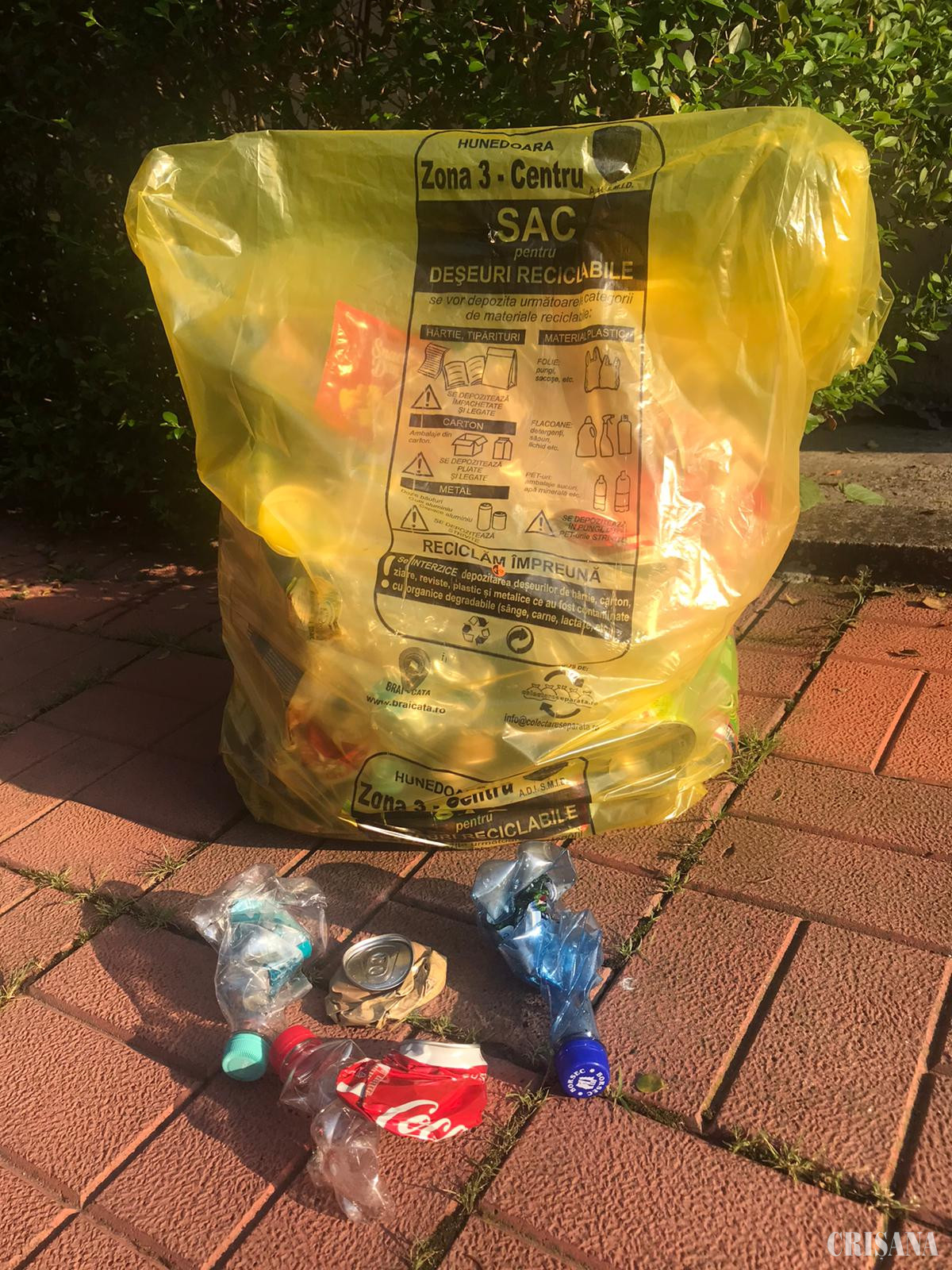 În Oradea, sacul galben este destinat depozitării deșeurilor din: plastic - PET-uri, ambalaje de detergent, ambalaje cum sunt cele pentru șampon și gel de duș, caserole din plastic, pungi și folii din plastic, ambalaje Tetra Pack (cutii de lapte, cutii de suc) - clătite și uscate; metal - cutii de conserve, doze din aluminiu, capace - clătite și uscate; hârtie și carton - ziare, reviste, produse din papetărie, caiete, cutii de carton, pliate și legate.
