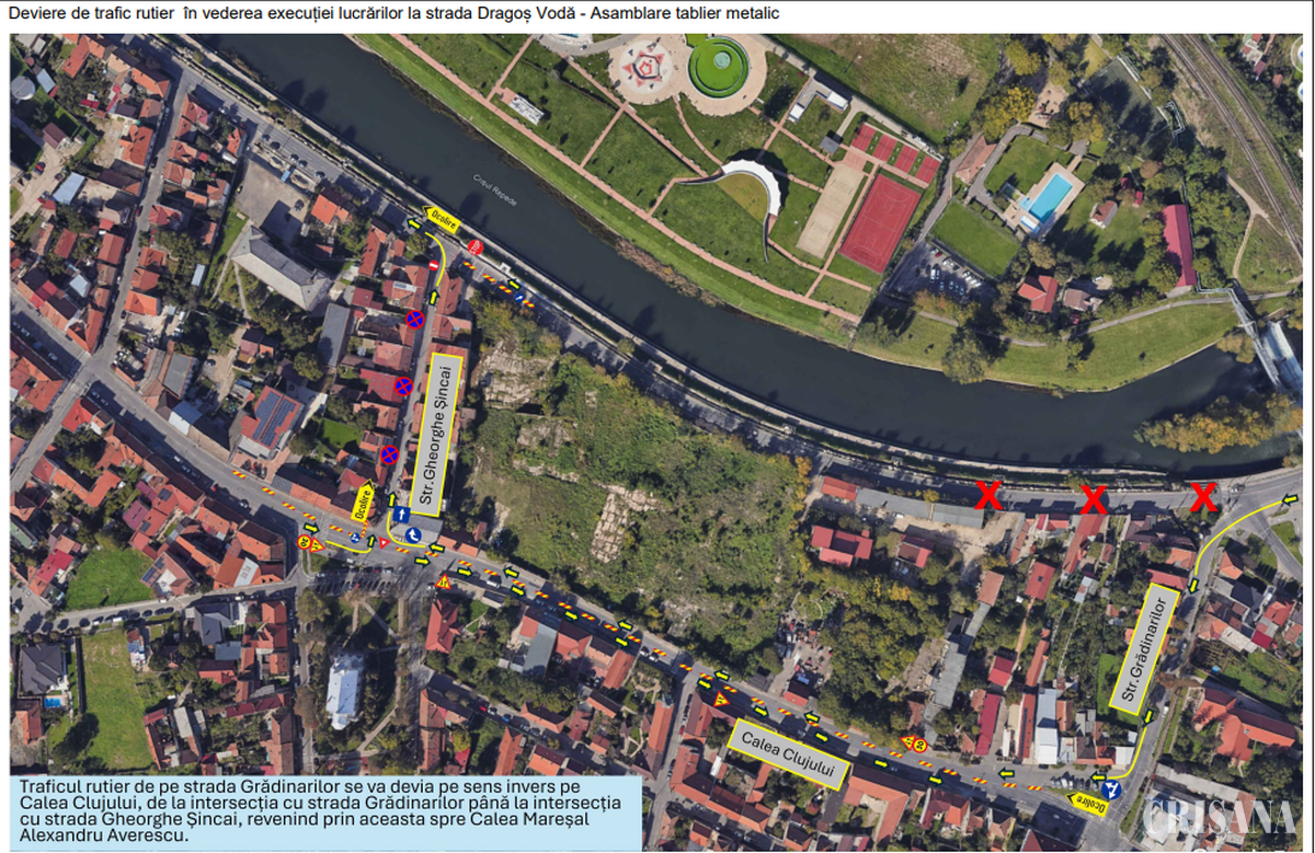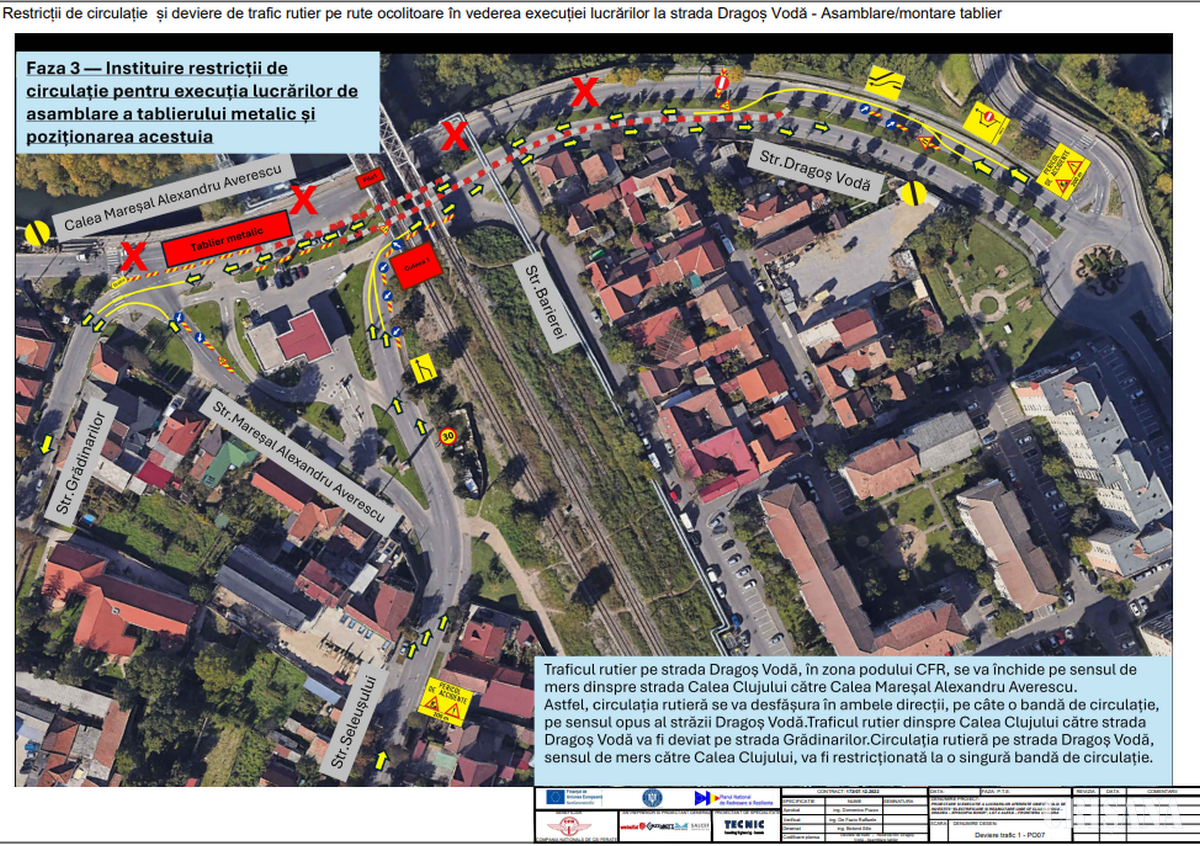 În cadrul proiectului de modernizare a liniei de cale ferată derulat de firma Webuild, se vor institui restricții de circulație pentru asamblarea tablierului metalic al podului. Astfel, circulația rutieră de pe strada Dragoș Vodă spre Calea Mareșal A. Averescu se va devia pe str. Grădinarilor – Calea Clujului – Gh. Șincai – str. Mareșal Alexandru Averescu în perioada 4 – 25 august. Pe Calea Clujului se va circula în dublu sens de la strada Grădinarilor până la intersecția cu Gh. Sincai. Strada Gh. Șincai devine sens unic dinspre Calea Clujului spre strada Averescu. Accesul spre proprietatea publică sau privată de strada Averescu (sector cuprins între Grădinarilor și Gh. Șincai) se va asigura doar dinspre strada Gh. Șincai.