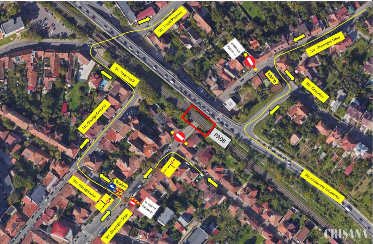 Primăria Oradea informează că, la solicitarea companiei Webuild, vor fi instituite restricții temporare de circulație pe străzile Piatra Craiului, Gheorghe Doja și Louis Pasteur, pentru executarea lucrărilor la pasajele feroviare.