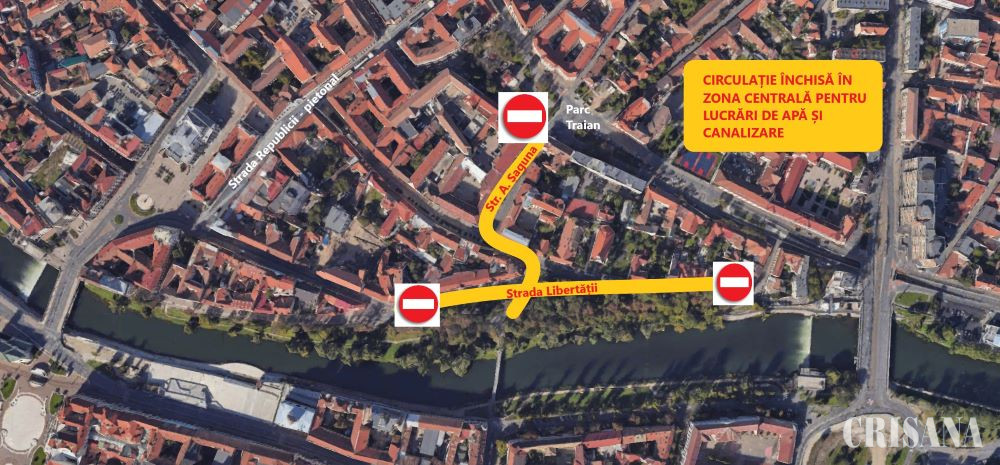 Pe străzile Andrei Șaguna și Libertății, circulația va fi complet închisă de marți, 23 iulie, până la 1 septembrie. Lucrările presupun înlocuirea rețelelor de apă pe strada Andrei Șaguna și înlocuirea rețelei de canalizare menajeră și pluvială pe străzile Andrei Șaguna, Aurel Lazăr, Libertății și Aleea Anna Marossy.